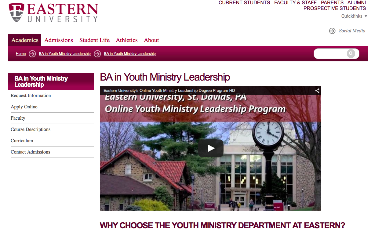• Current Issues in Student Ministry (Online) • Adolescent Spirituality on Youth Ministry Master of Arts in Christian Ministry or a Master of Divinity degree that accept 100% of certificate credits. ... Fetch This Document